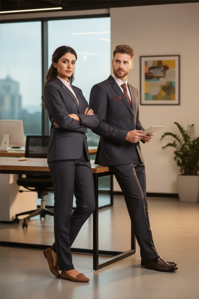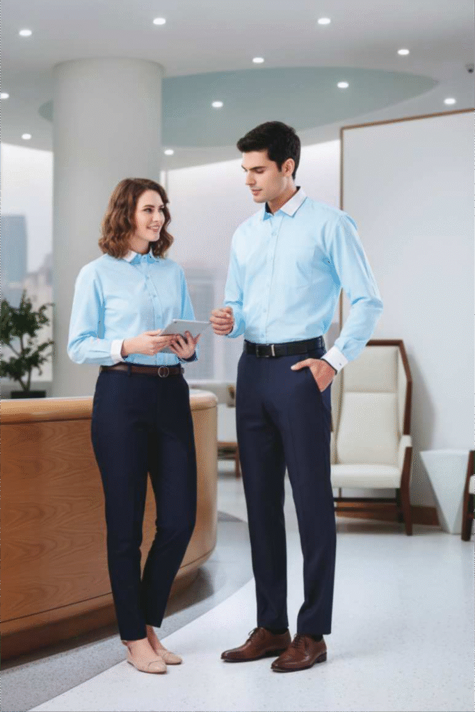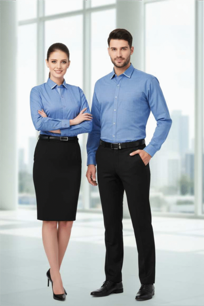 Breathable and durable poly-cotton blends, twill, and stretch fabrics are optimized for comfort, performance, and climate adaptability across India, the Middle East, USA, and Canada.Wrinkle-resistant finishes maintain a sharp, professional image even during long working hours and frequent travel between regions.