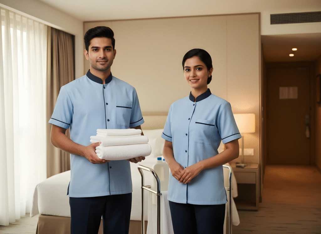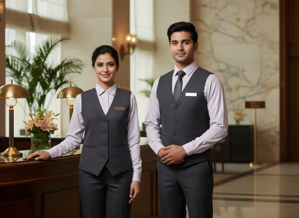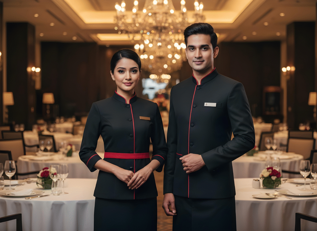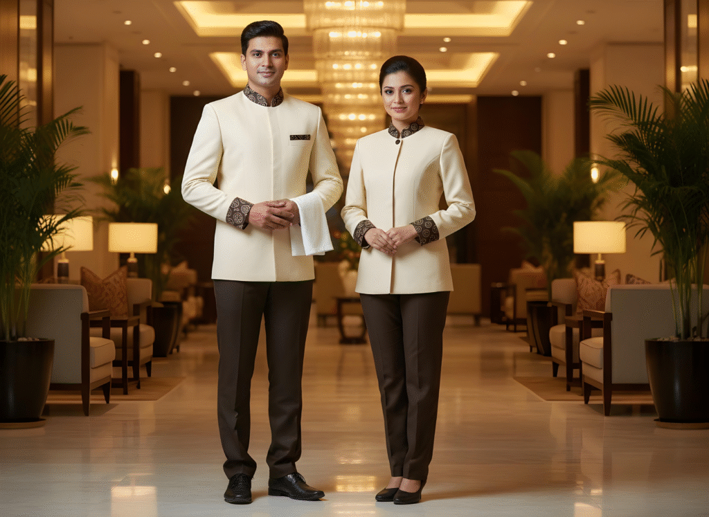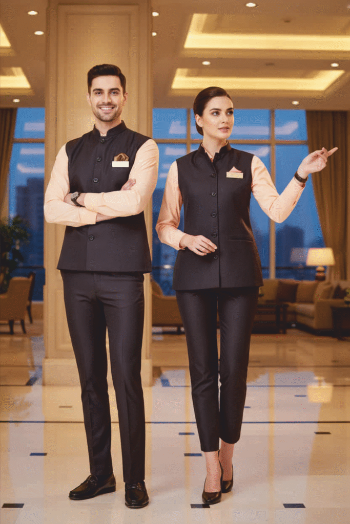 The Hospitality Uniform selection crafted for Arvind Industries blends elegance, durability, and functional design tailored to hotels, restaurants, resorts, and hospitality services across India, the Middle East, USA, and Canada. This apparel suite includes chef coats, aprons, kitchen trousers, housekeeping dresses, steward uniforms, reception suits, and bellboy outfits. Textiles are stain-resistant, breathable, and wrinkle-release, designed to maintain a professional appearance throughout demanding shifts. Comfort and fit are prioritized with tailored cuts and gender-inclusive sizing options. Custom embroidery and printing options allow hotels and venues to present a unified brand image with pride. Process efficiencies encompass complimentary design consultations, sample approvals, and on-time delivery tailored to service industry milestones.