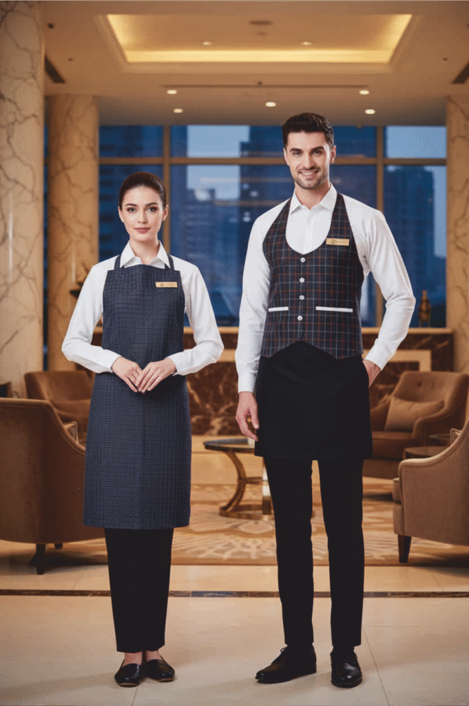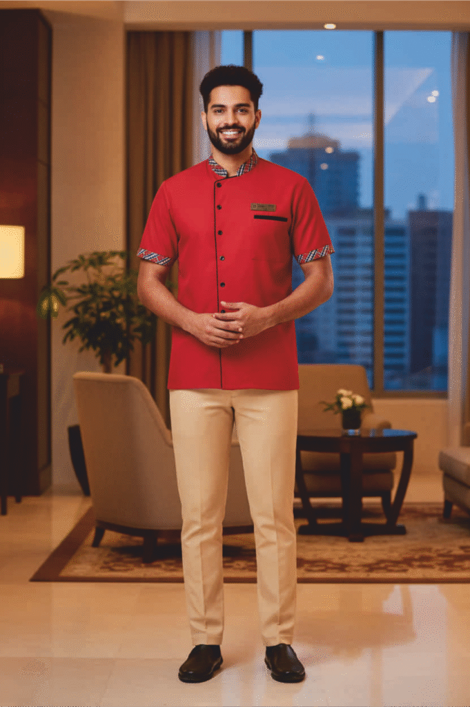 Arvind Industries’ Hotel Uniform range is specifically designed to enhance the guest experience through professionalism and consistent brand imagery in Indian, Middle Eastern, North American, and Canadian hotel markets. This collection features front office suits, concierge uniforms, doorman coats, bellboy outfits, housekeeping dresses, chef jackets, and kitchen pants. Utilizing premium fabrics that resist stains and wrinkles, the uniforms retain elegance throughout long, demanding shifts. Custom embroidery of hotel crests and logos further elevates brand identity and professionalism. The uniform cuts are inclusive and tailored, meeting diverse departmental needs within luxury and business-class hotels. Full design, sampling, and ordering support streamline the procurement process to ensure hotel staff appearance aligns with Arvind Industries’ high standards.